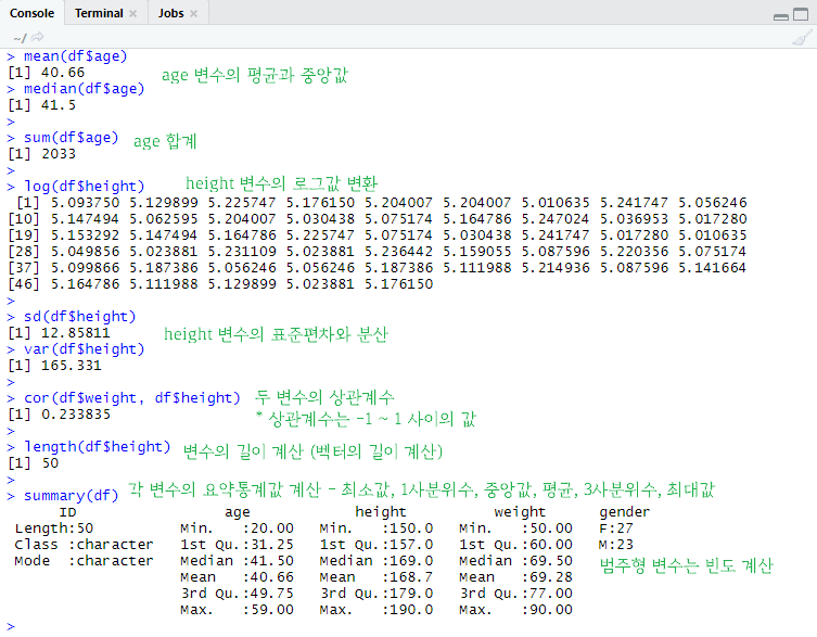 ※ NA값이 포함되어 있다면 mean(변수, na.rm=T)