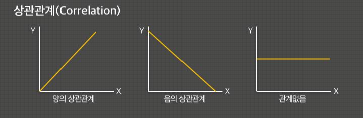 동시에 감소하는 모습이면 음의 상관관계, 그리고 별다른 상관관계가 없는 경우가 있다.