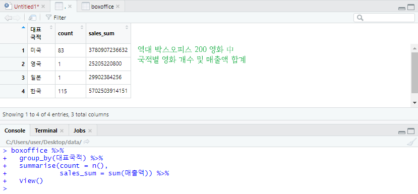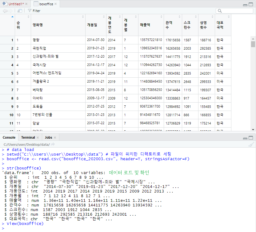 boxoffice <- read.csv("boxoffice_202003.csv", header=T, stringsAsFactor=F)
