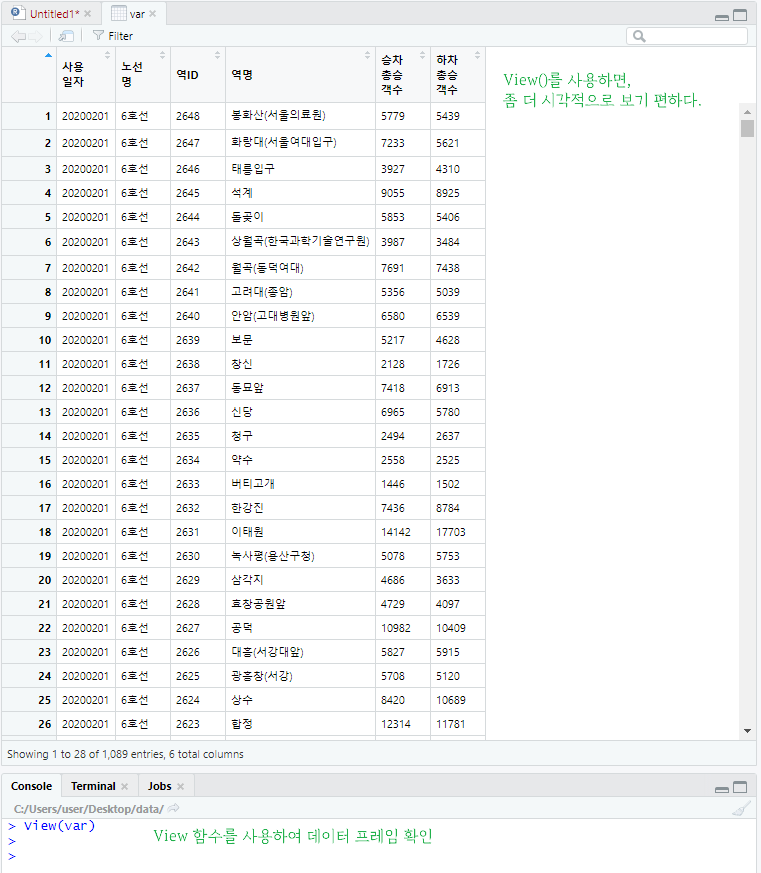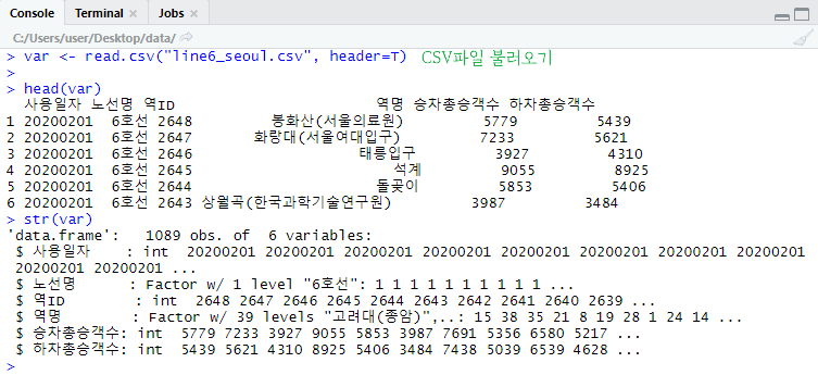 var <- read.table("C:\\Users\\user\\Desktop\\data\\line6_seoul.txt", header=T, sep='\t')